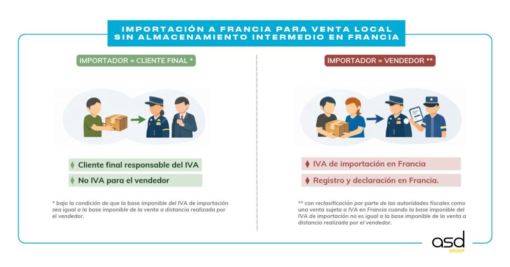 En estas condiciones, el vendedor no es sujeto pasivo del IVA a la importación en Francia. Asimismo, la venta realizada al cliente final se considera localizada fuera del ámbito de aplicación territorial del IVA, por lo que no está obligado al pago del IVA en Francia por dicha venta