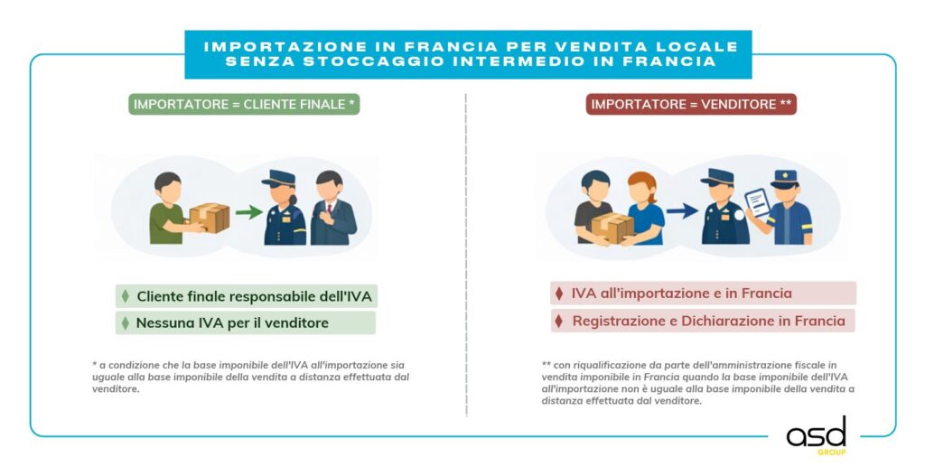 In tali circostanze, il venditore non è soggetto all’IVA all’importazione in Francia. Inoltre, la vendita che effettua al cliente finale è considerata localizzabile al di fuori del campo di applicazione territoriale dell’IVA; pertanto, non è soggetto all’IVA in Francia a titolo di tale vendita.